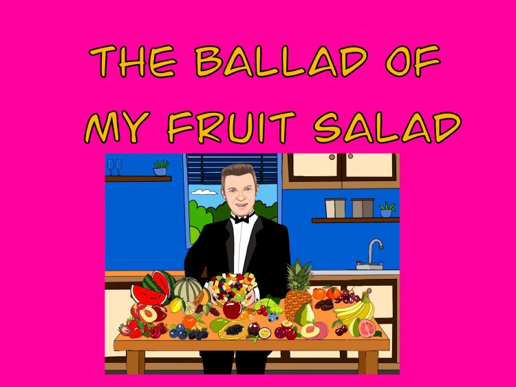 The Ballad Of My Fruit Salad Posted bychrisbrealey21st Apr 202121st Apr 2021Posted inComedy Songs Dedicated to Adam Loader and Willow Brealey Unwanted fruit salad provokes mass food fight! Share this: Click to share on X (Opens in new window) X Click to share on Facebook (Opens in new window) Facebook Like Loading... Related